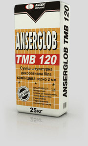 Смесь штукатурная декоративная белая ANSERGLOB ТМВ 120 с камешковой фактурой и грануляцией зерна 1,5 мм и 2,0 мм (под окрашивание) служит для выполнения декоративного, тонкослойного оштукатуривания как внутренних, так и внешних стен зданий, а также в системе скреплённой теплоизоляции ANSERGLOB. Наносится на любые минеральные основания (цементные, цементно-известковые, гипсовые штукатурки и т.д.).