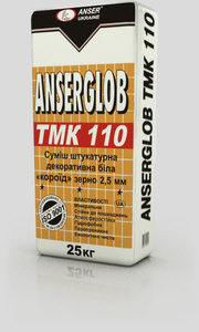 Смесь штукатурная декоративная «короед» белая ANSERGLOB ТМК 110 с короедной структурой и грануляцией зерна 2,0 мм; 2,5 мм; 3,5 мм (под окрашивание) предназначена для выполнения декоративного, тонкослойного оштукатуривания как внутренних, так и внешних стен зданий, а также в системе скреплённой теплоизоляции ANSERGLOB. Наносится на любые минеральные основания (цементные, цементно-известковые, гипсовые штукатурки и т.д.).